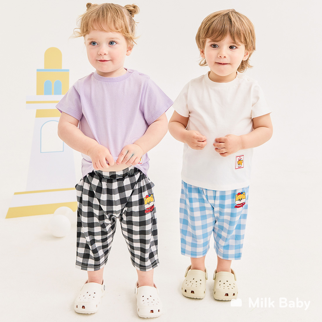 해피해피퍼피체크유아쿨링팬츠