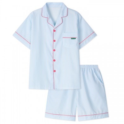 [티세르] 마린 스카이블루 실크스킨 반팔 상하의 세트 (남녀공용)